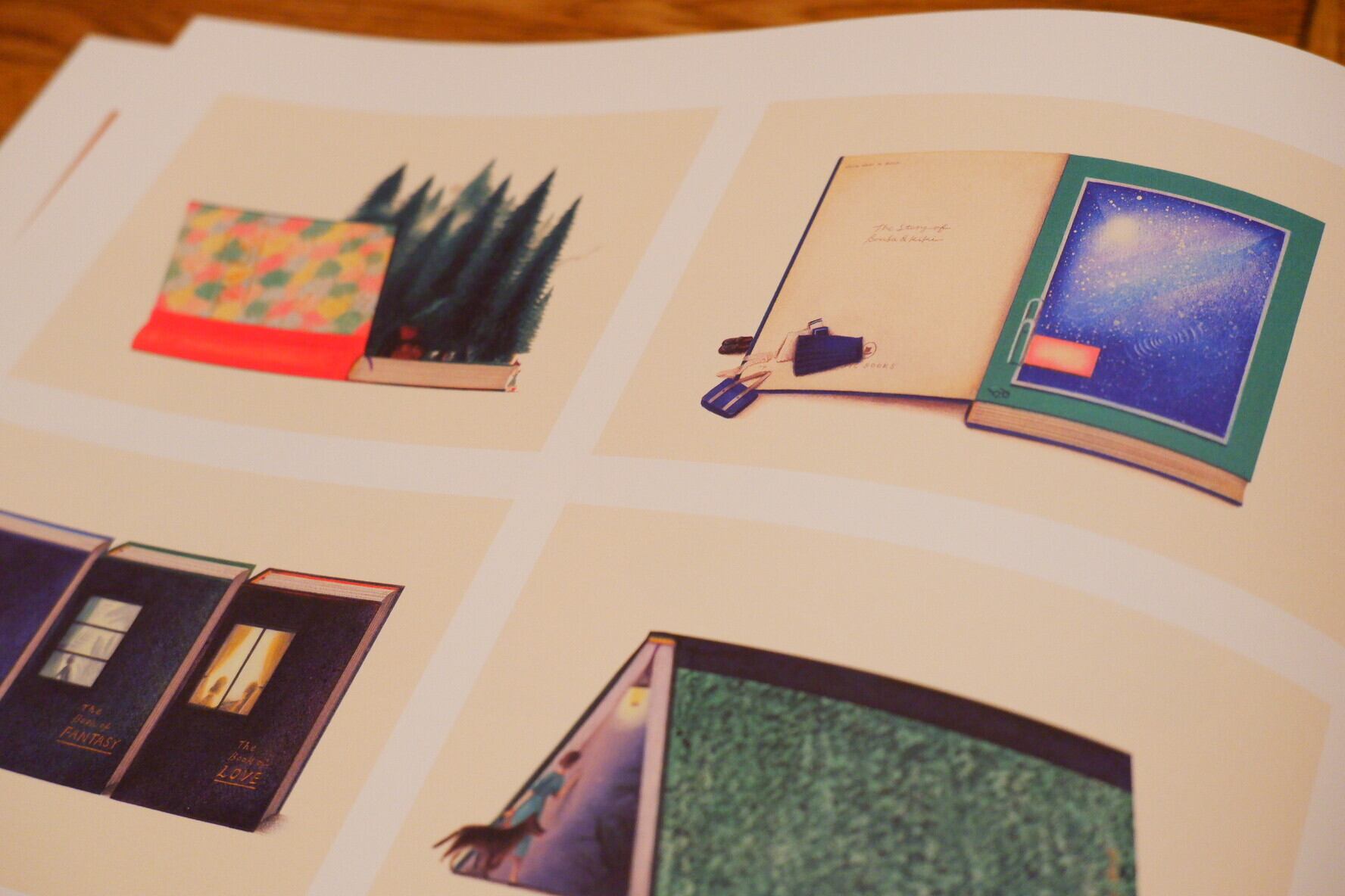 石川県在住のイラストレーター・嶽まいこさん初の作品集。スープにパン、コーヒーカップと森の生き物、個性豊かな家々にリビングルーム。丁寧な筆致と奥行きのある色彩によって描かれる風景は、シュルレアリスティックな不穏さがありながらも、暖炉の火を思わせるあたたかみを纏っています。見応えのある一冊。